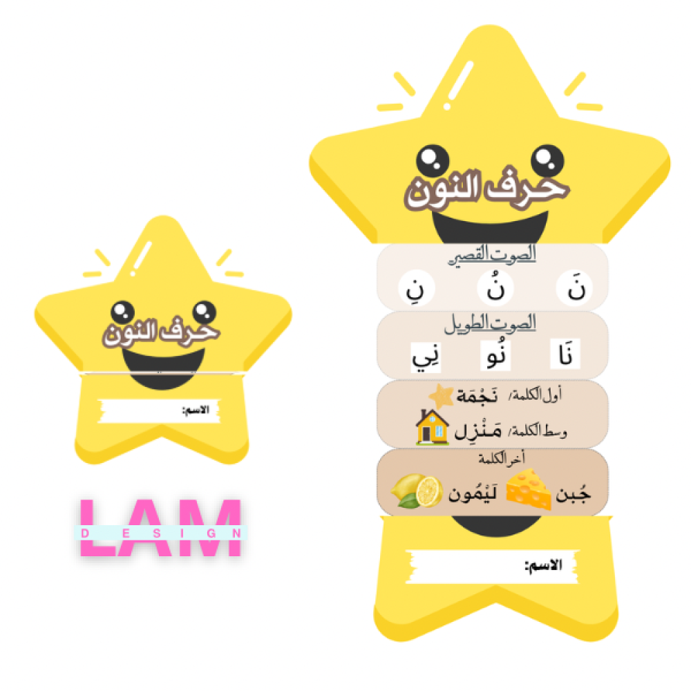مطوية حرف النون تتم الطباعة على ورقة A4 وقص الحدود مع الطي ع الخطوط المنقطة لتصبح شكل نجمة عند غلقها ملف pdf جاهز للطباعه