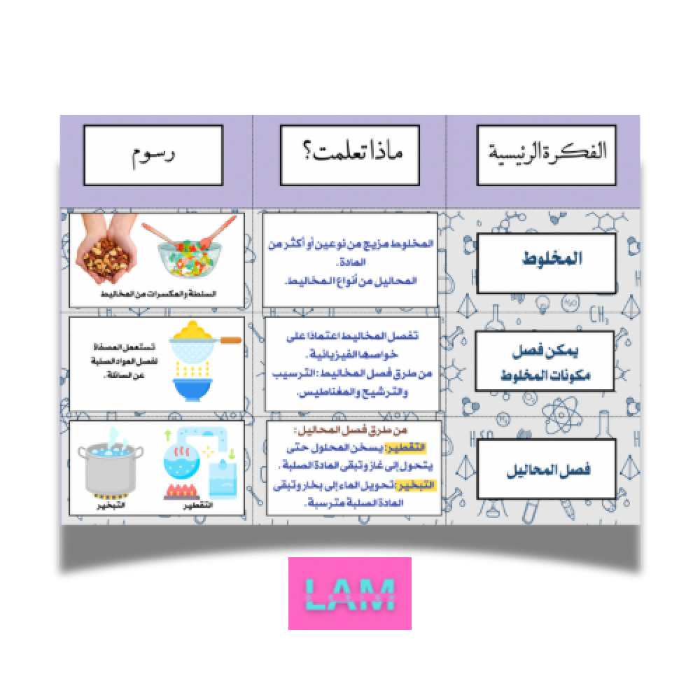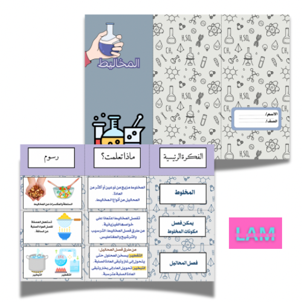 مطوية مادة العلوم (المخاليط) واجب صفحة ٤٠الصف الرابع ابتدائي )الفصل الدراسي الثالثملف pdf جاهز للطباعة