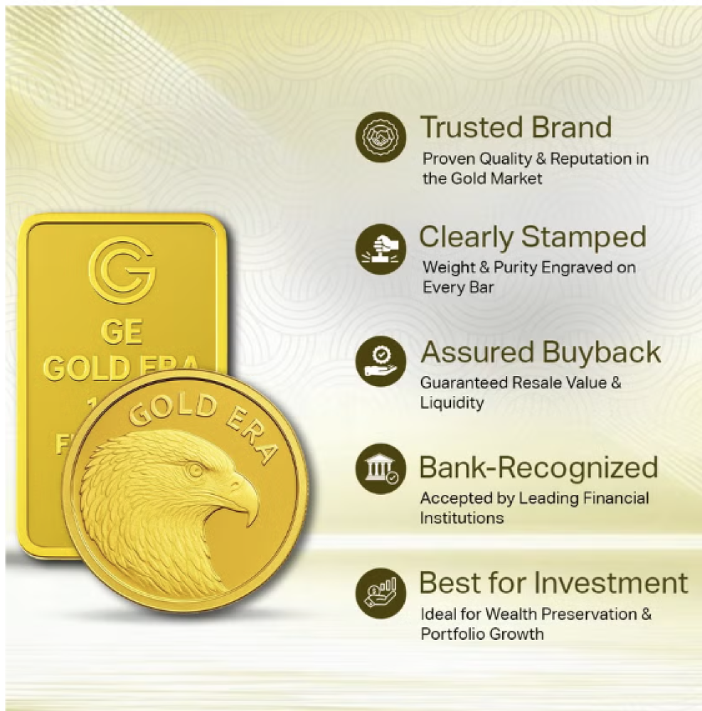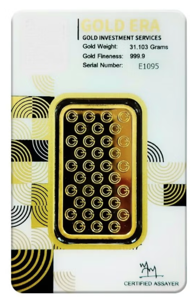 سبائك جولد إيرا الذهبية 24 عيار (999.9%) توفر فرصة استثمارية مميزة مصنوعة بدقة من ذهب نقي للغاية. معروفة بنقاوتها العالية وقيمتها الدائمة، تُعد أصلًا آمنًا وموثوقًا لتنويع وحماية الثروة.