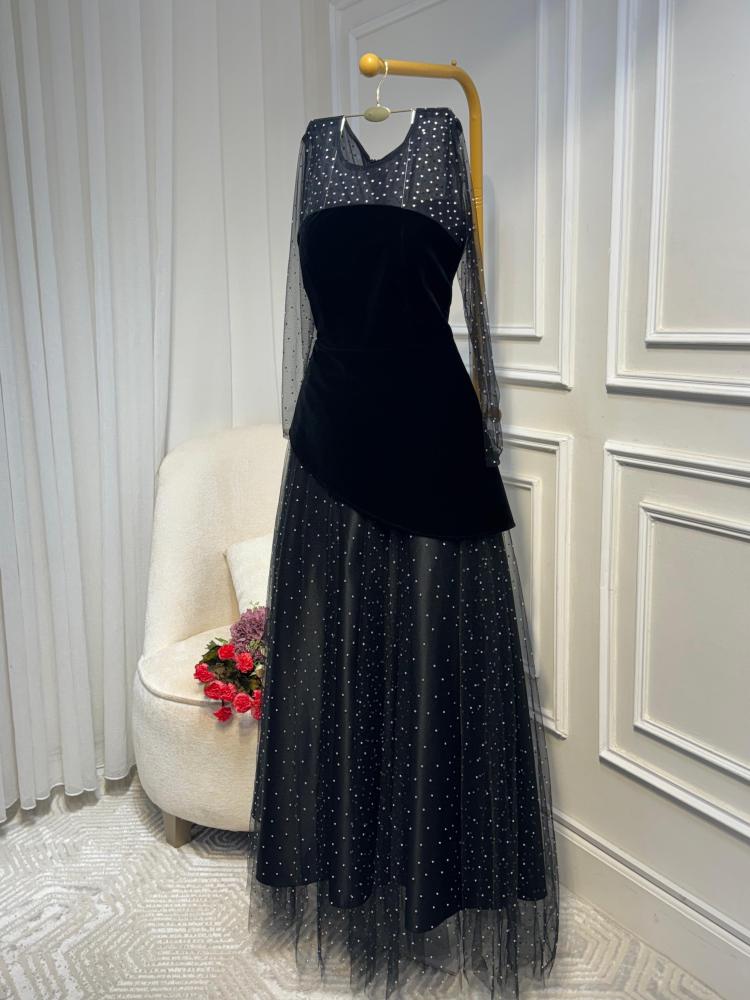 كلفة متقنة تضفي لمسة فاخرة وتزيد من تألق الفستان.