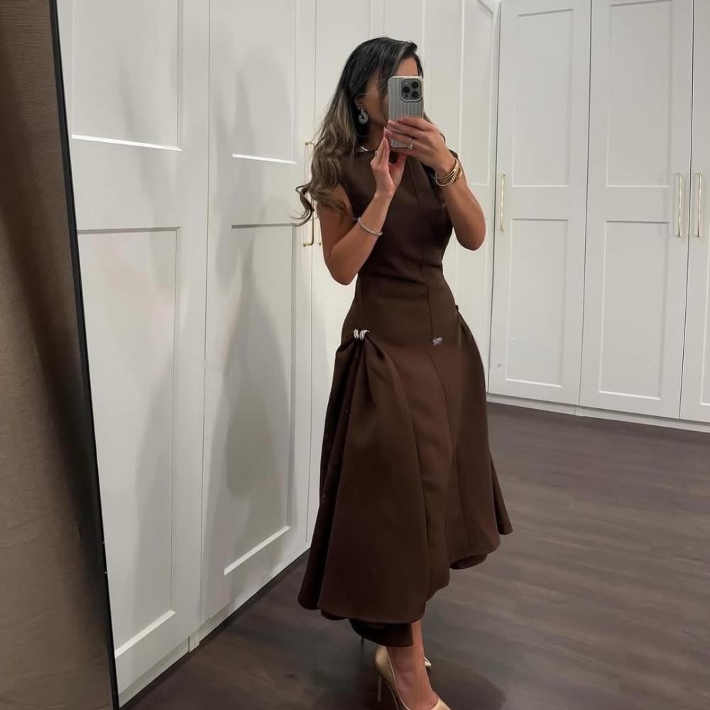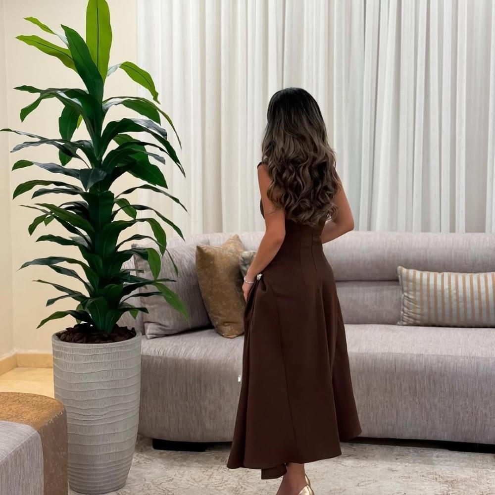 * يمكن تنسيق الفستان مع حذاء بكعب عالٍ وحقيبة يد أنيقة لإكمال المظهر.