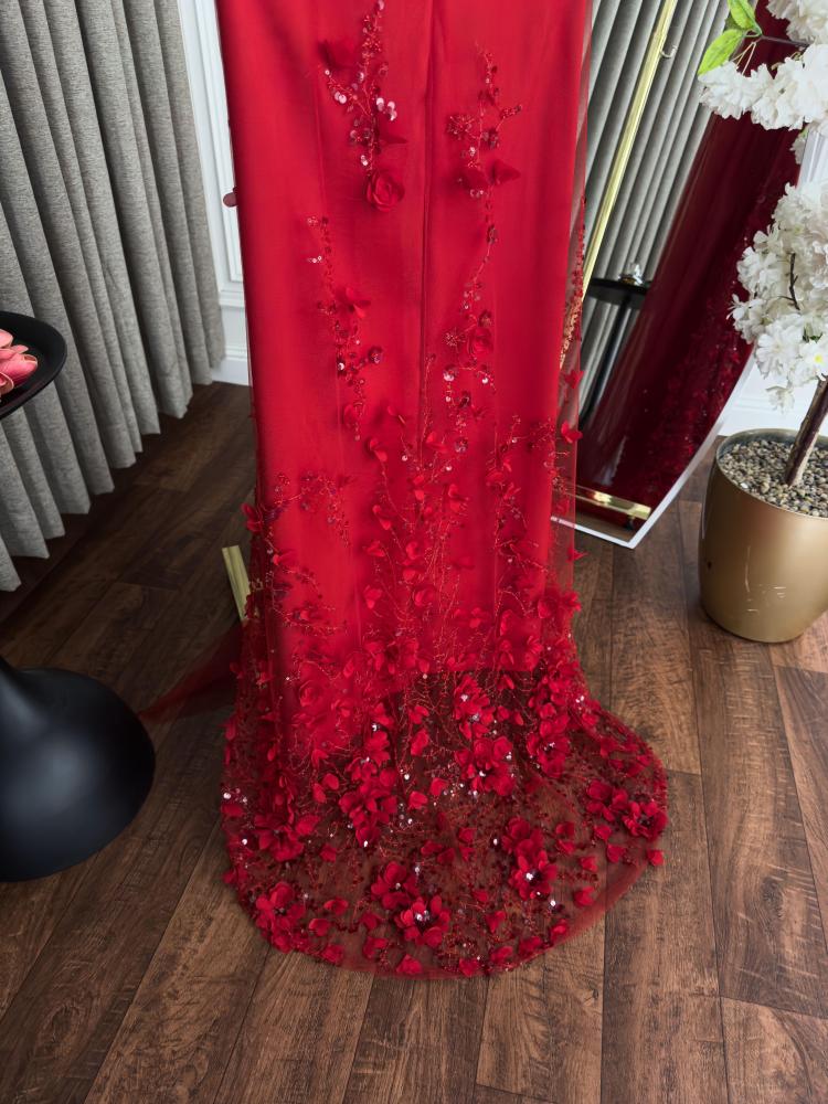 كلفة متقنة تضفي لمسة فاخرة وتزيد من تألق الفستان.