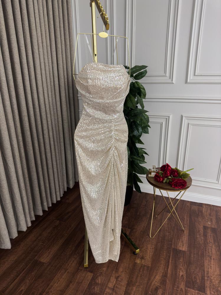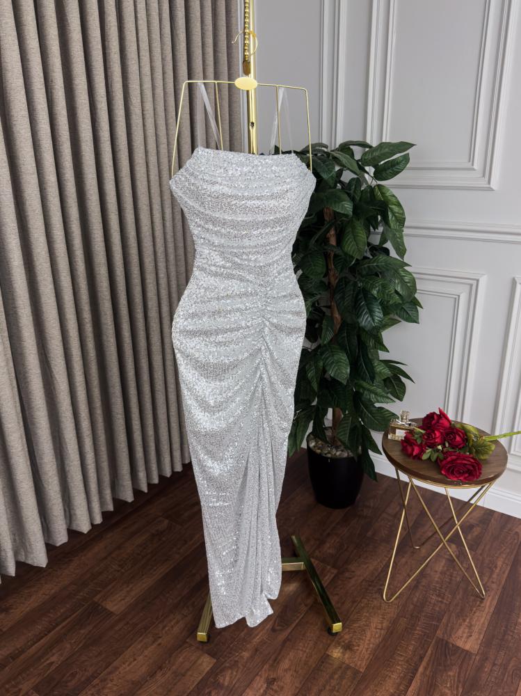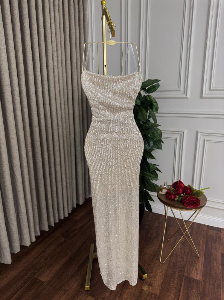 فستان سهرة ناعم وانيق , اروع تصميم الفساتين , فستان مكشوف الكتف , فستان متألق , فستان سهرة فخم , فستان سهرة ,