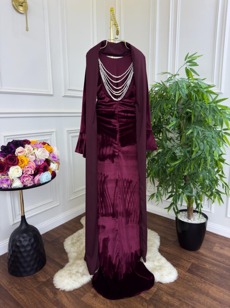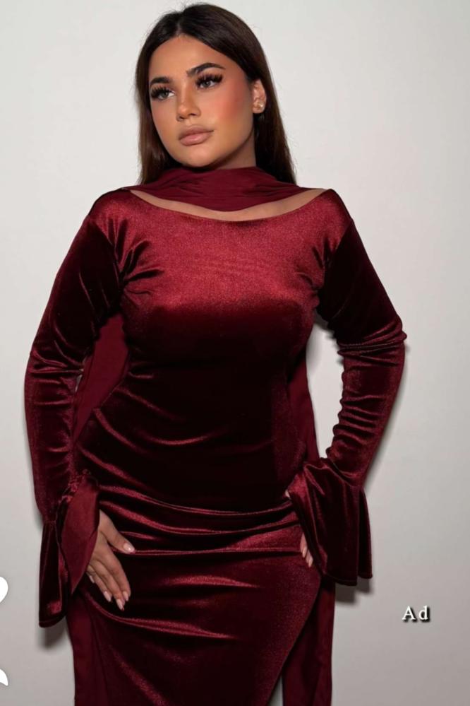 اكتشفي جمال فستان مخمل مميز سترس وأكمام واسعة، في مناسباتك القادمة، حيث يوفره فساتين غنج ،