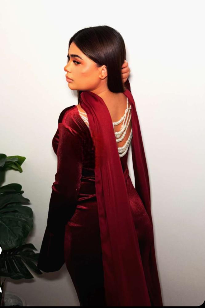 طريقة المحافظة على فستان مخمل مميز سترس وأكمام واسعة