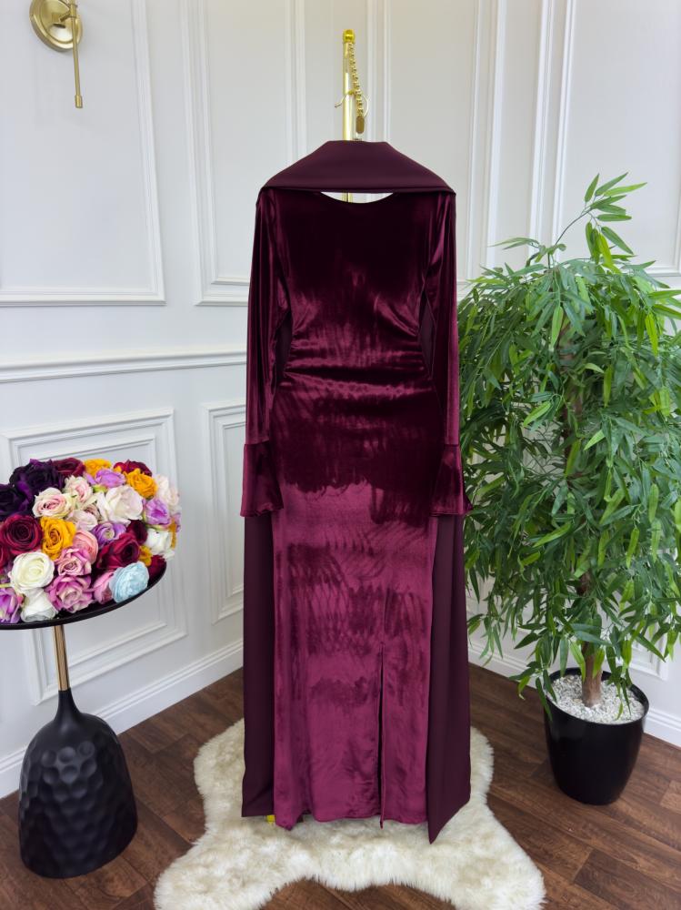 - اسم المنتج: فستان مخمل مميز سترس وأكمام واسعة