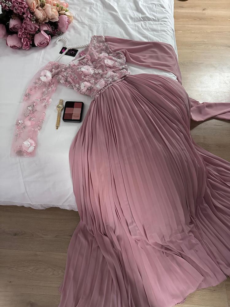فستان جمع بين النعومه والشعور الهادي بسبب اللون الجميل احدث الوان سنه 2025