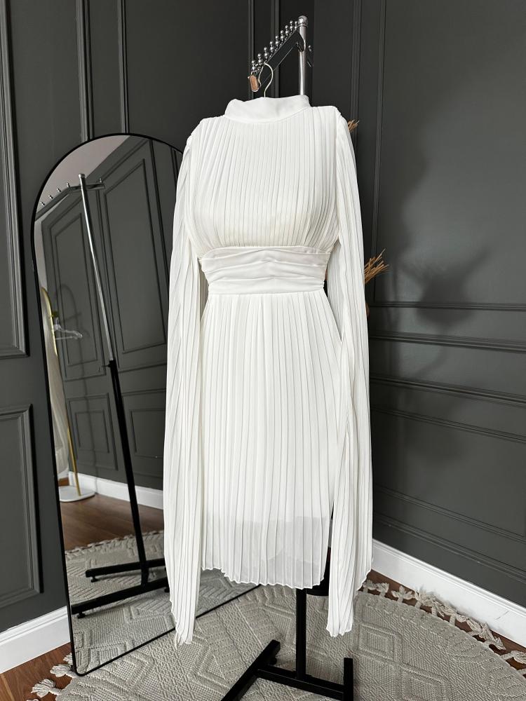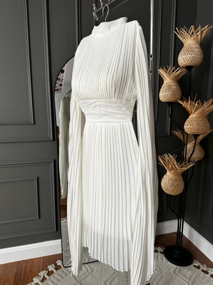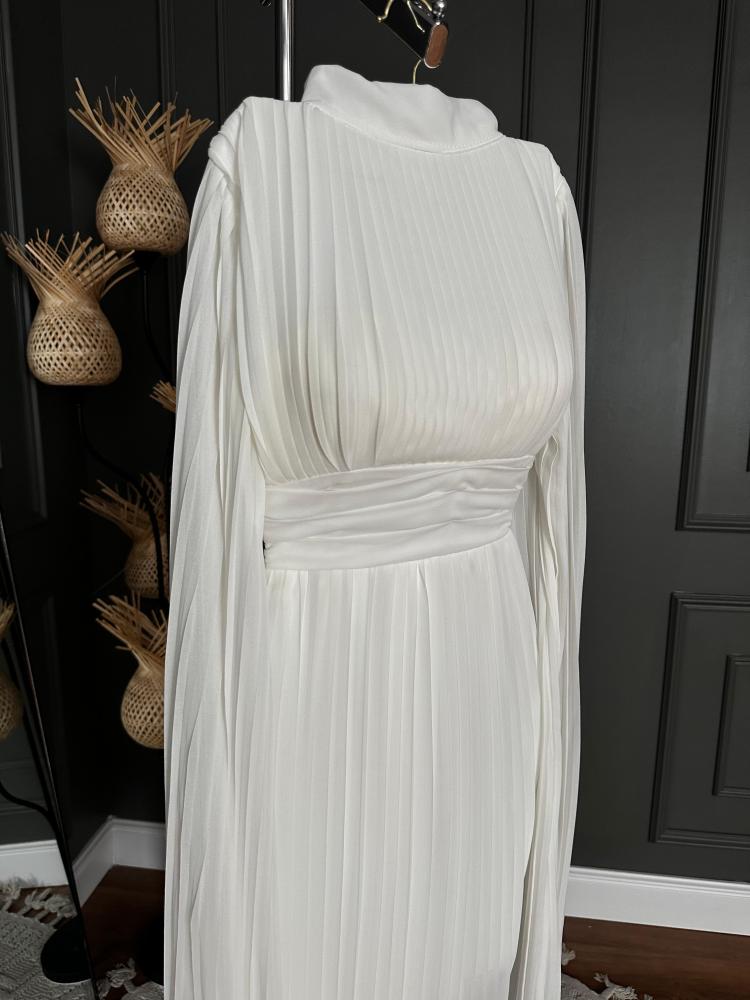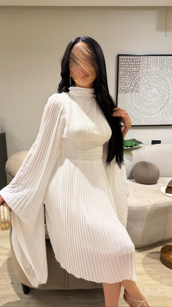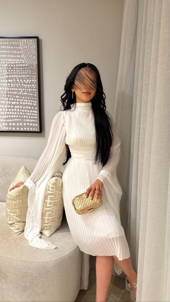 بفضل لونه الأبيض الراقي، يمكن ارتداء هذا الفستان في مختلف المناسبات سواء كانت حفلات زفاف، حفلات العشاء، أو حتى السهرات الرسمية.