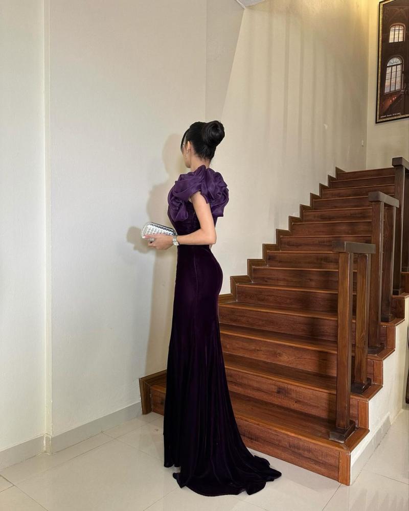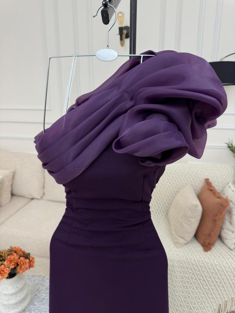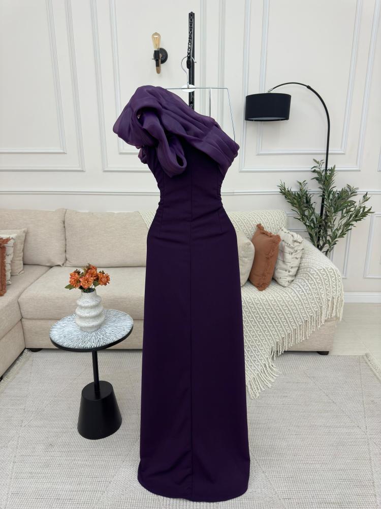 * فستان سهرة فاخر بكتف واحد، مصنوع من قماش باربي عالي الجودة. يتميز بتطريزات رقيقة على الكتف الواحد، وتنورة طويلة بقصة A تبرز أنوثة الجسم. يجمع الفستان بين الرقي والأناقة، مما يجعله الخيار الأمثل للمناسبات الرسمية.