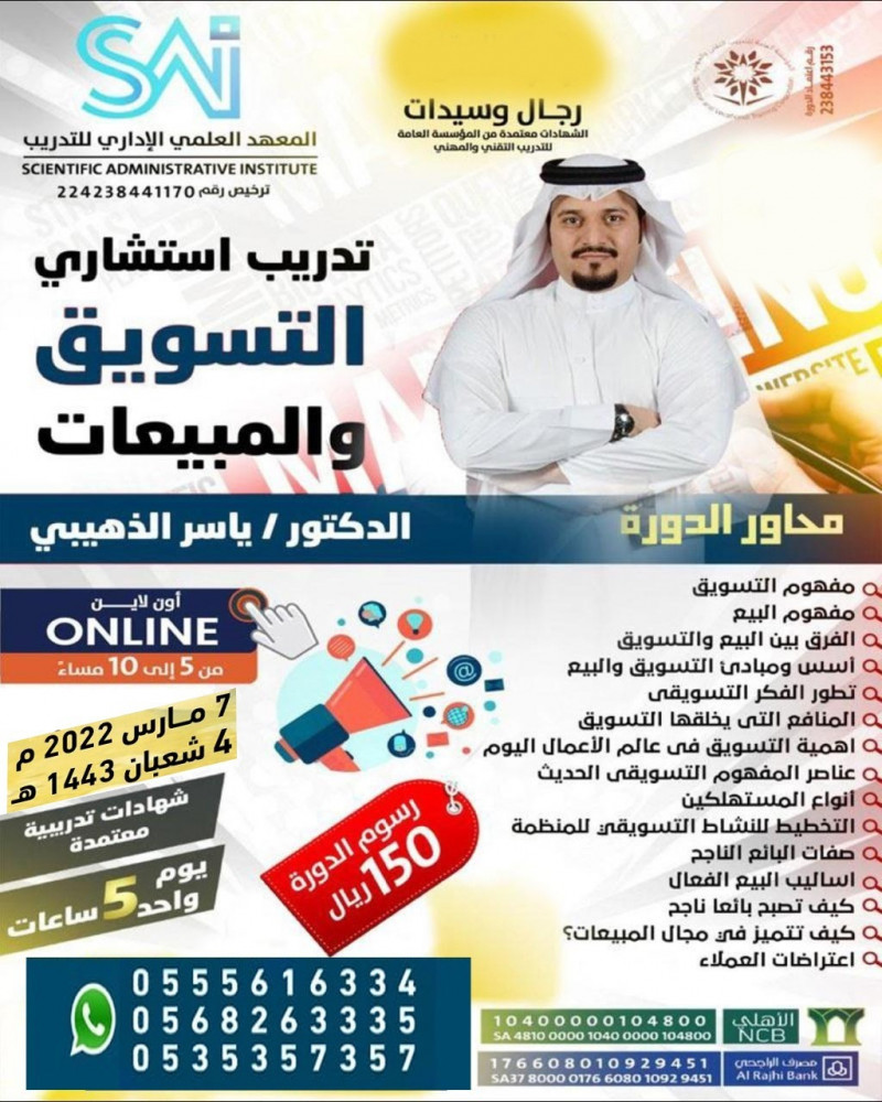 دورة تدريب استشاري التسويق والمبيعات - 07 مارس 2022