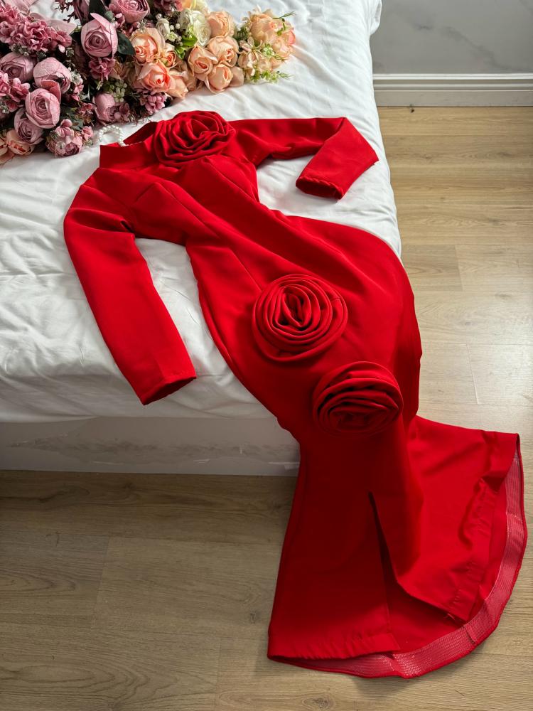 فستان احمر فاتح قصه سمكه مميز