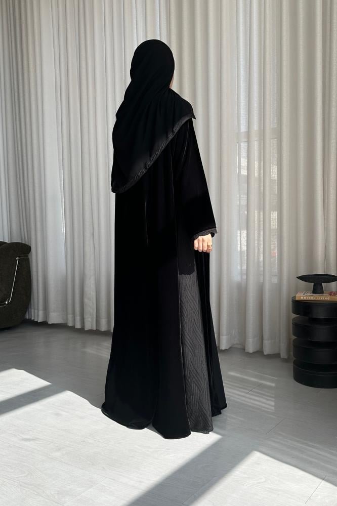 عباية مخمل وركامة هندي مع الجوانب، قصة نص كلوش مع طرحة بطرف