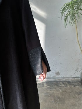 عباية كريب ملكي مع تدخيلة كم وقيطان حرير مطرز