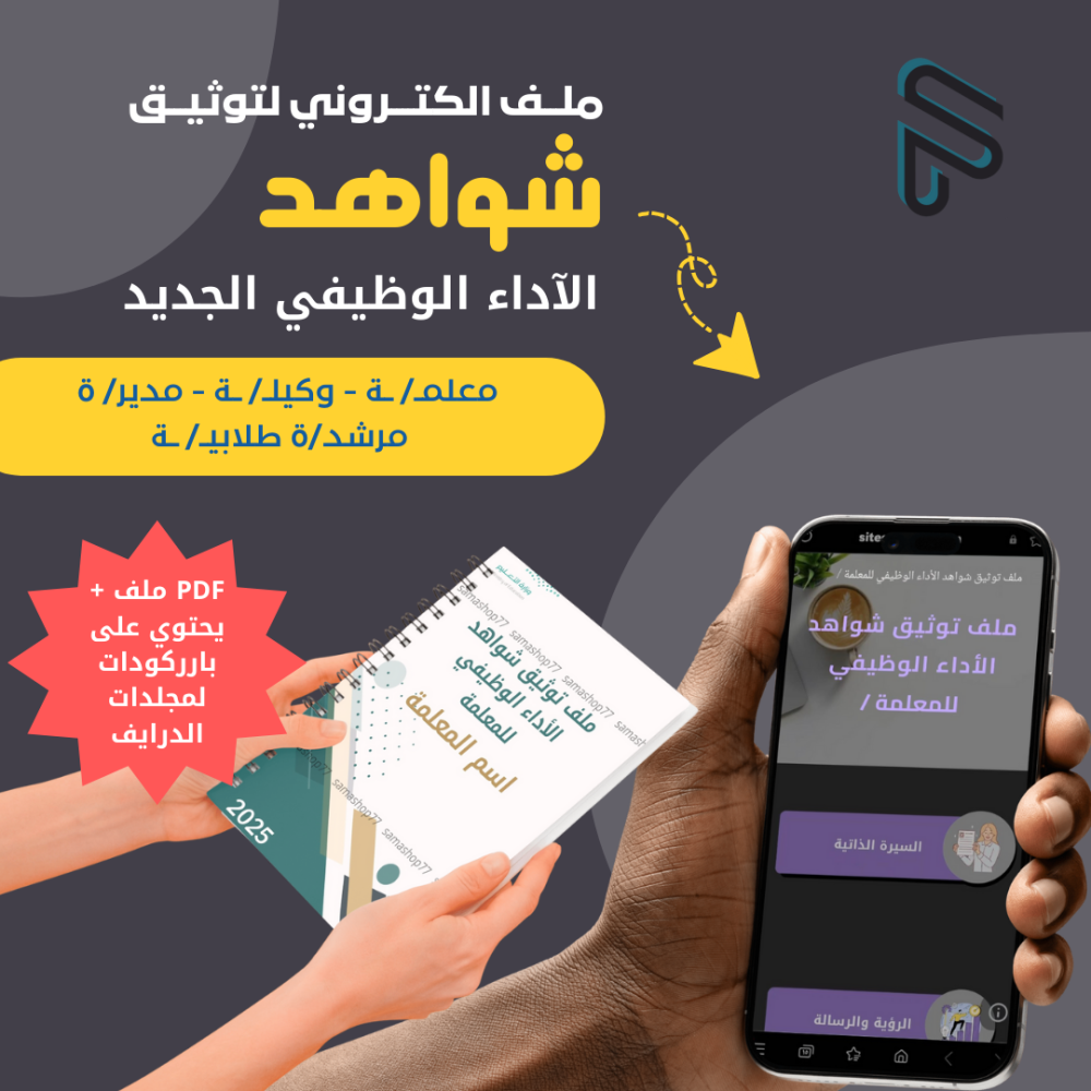 ملف إلكتروني (موقع) لتوثيق شواهد الأداء الوظيفي الجديد ( معلم , وكيل , مدير - مرشد طلابي ) + ملف PDF
