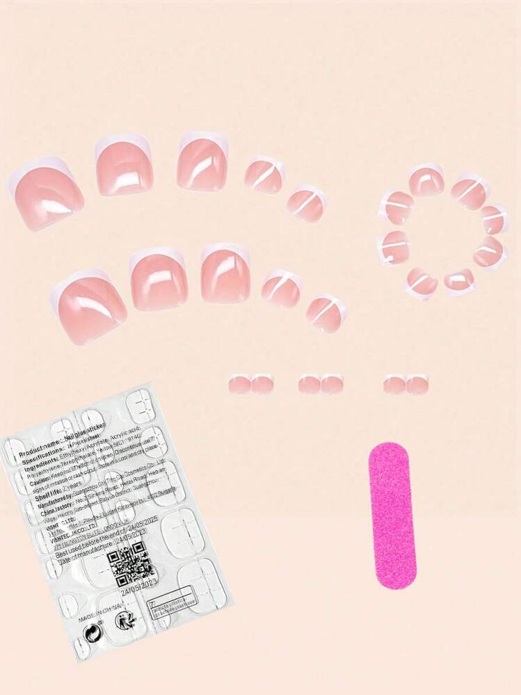 اطلب طقم أظافر قدم مزيفة 24 قطعة بشكل مربع بقاعدة برونز وأنيقة بتصميم ناعم بحواف فرنسية للسحابة البي