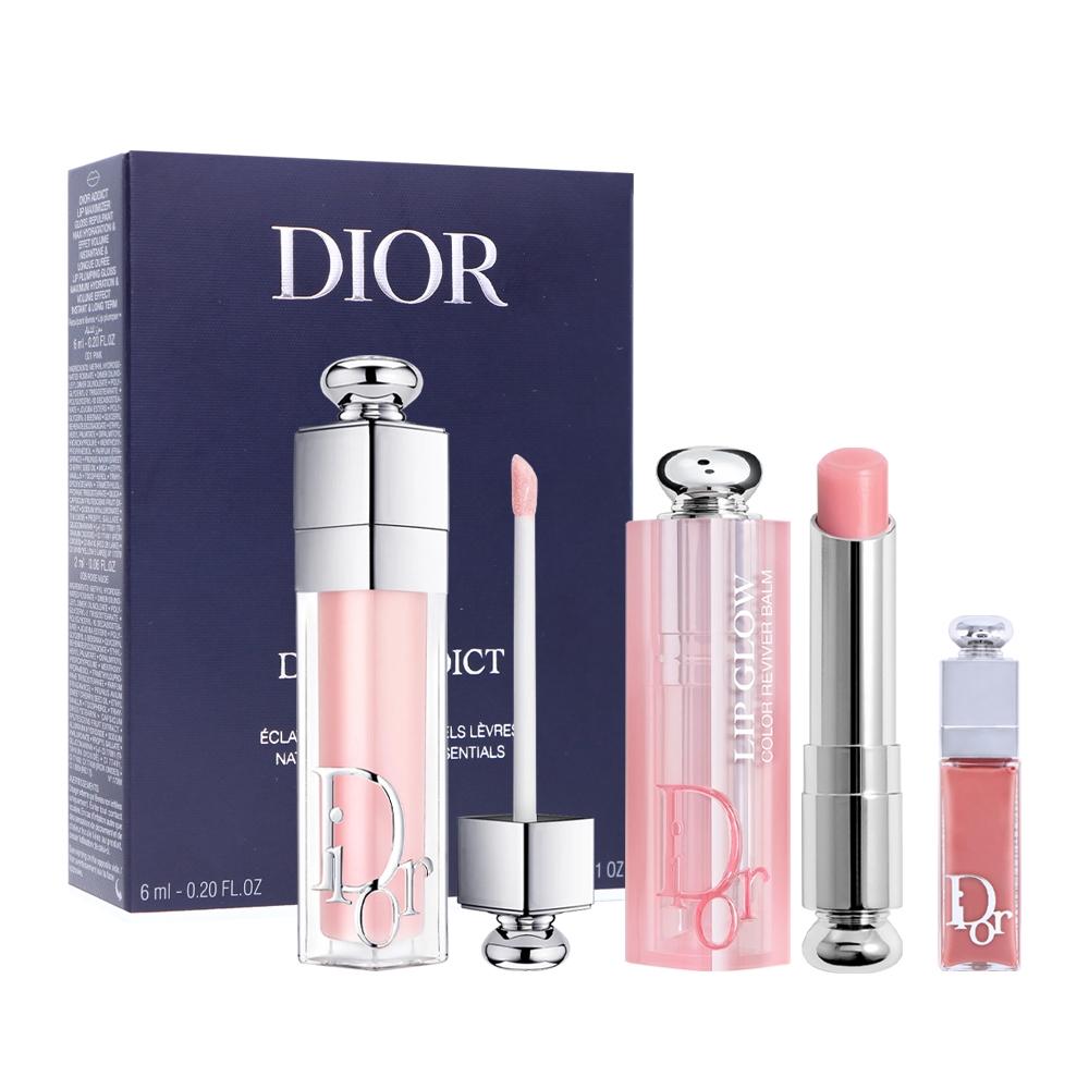 مجموعة الشفاه من ديور ادكت مكونه من بلسم الشفاه 001 حجم 3.2g ومعزز للشفاه رقم 001 حجم 6 ML و قلوس رقم 038 حجم 2 ML