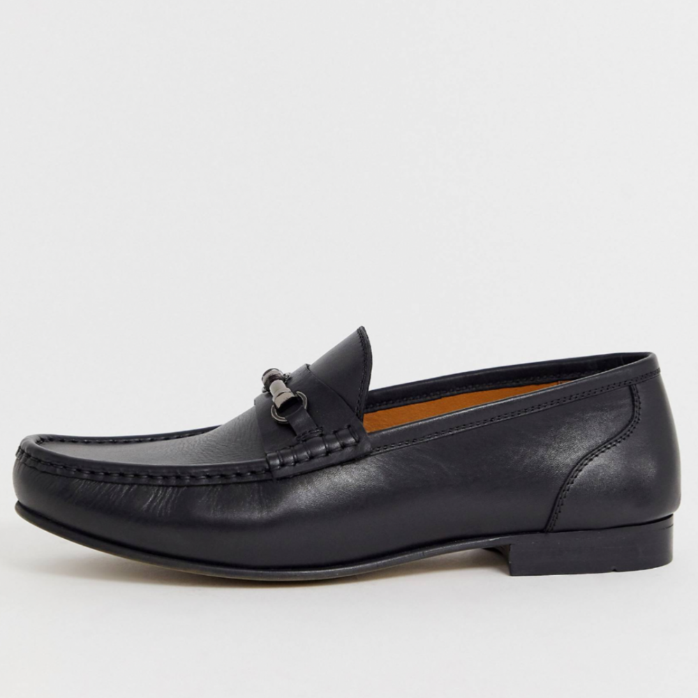 ASOS CLASSC LOAFERS FOR MENحذاء لوفر جلد كلاسيك رسمي للرجال من اسوز باللون الأسودمع تفاصيل انيقةاصلي 100%
