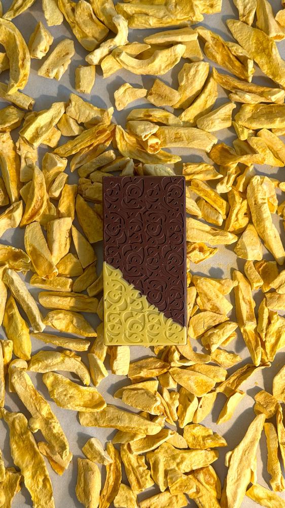 تأتي هذه الشوكولاتة الفاخرة التي مزجناها من حبوب أحادية المصدر من جواتيمالا بقطع المانجو اللانجري الفاخر الذي يزرع في جازان منذ ٣٠ عاماً مجففاً بتقنية التجميد الجاف لتنقل لكل الطعم بكل خصائصه ونكهاته الفريدة
