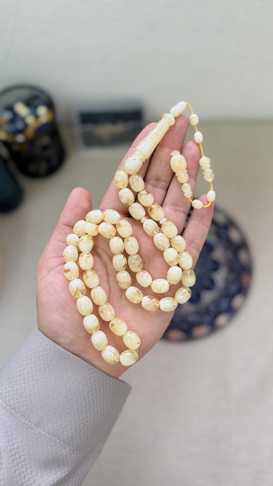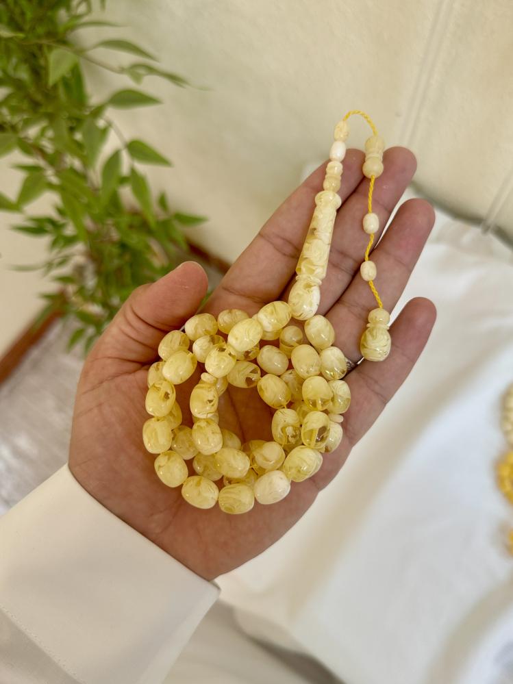 سبحة راقية من خامة فاخرة من المستكة مصرية بدون ريحة عالية الجودة ذات ملمس حريري . الوزن :45 غرامالمقاس : 12 مليالعدد : 45 خرزه