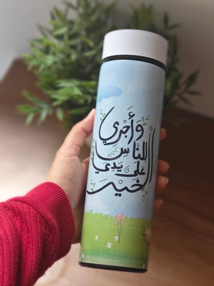 اختر الشكل المطلوببإمكانك إضافه اي صوره او تصميم خاص فيكبإمكانك إضافه اي عبارةالمق يحتوي على مقياس حراره بالاعلى لمسيحفظ الحرارة ل6 ساعات والبروده 12 ساعة