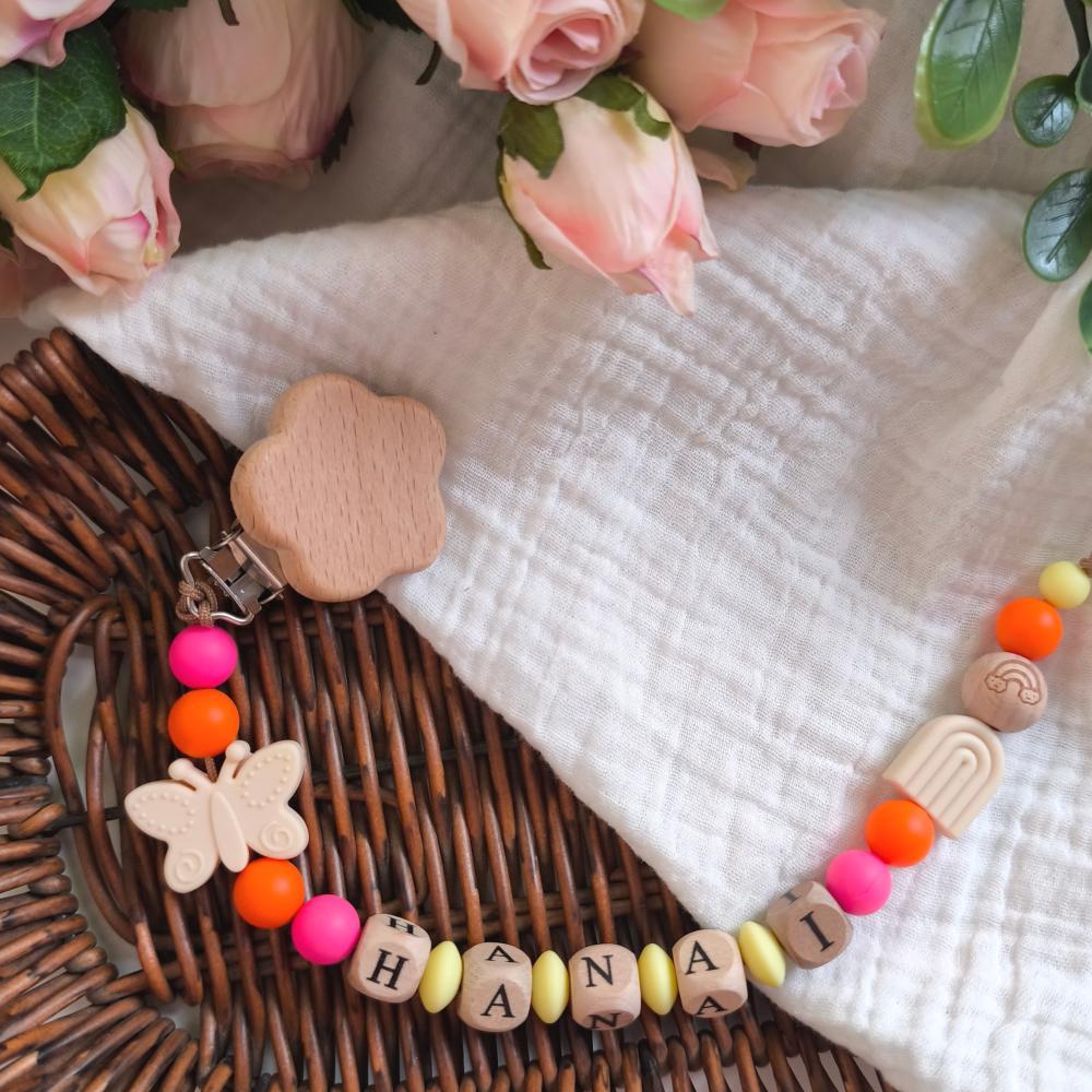 🌸 تعليقة لهاية بالاسم مع حفر الاسم ليزر على المشبك الخشبي