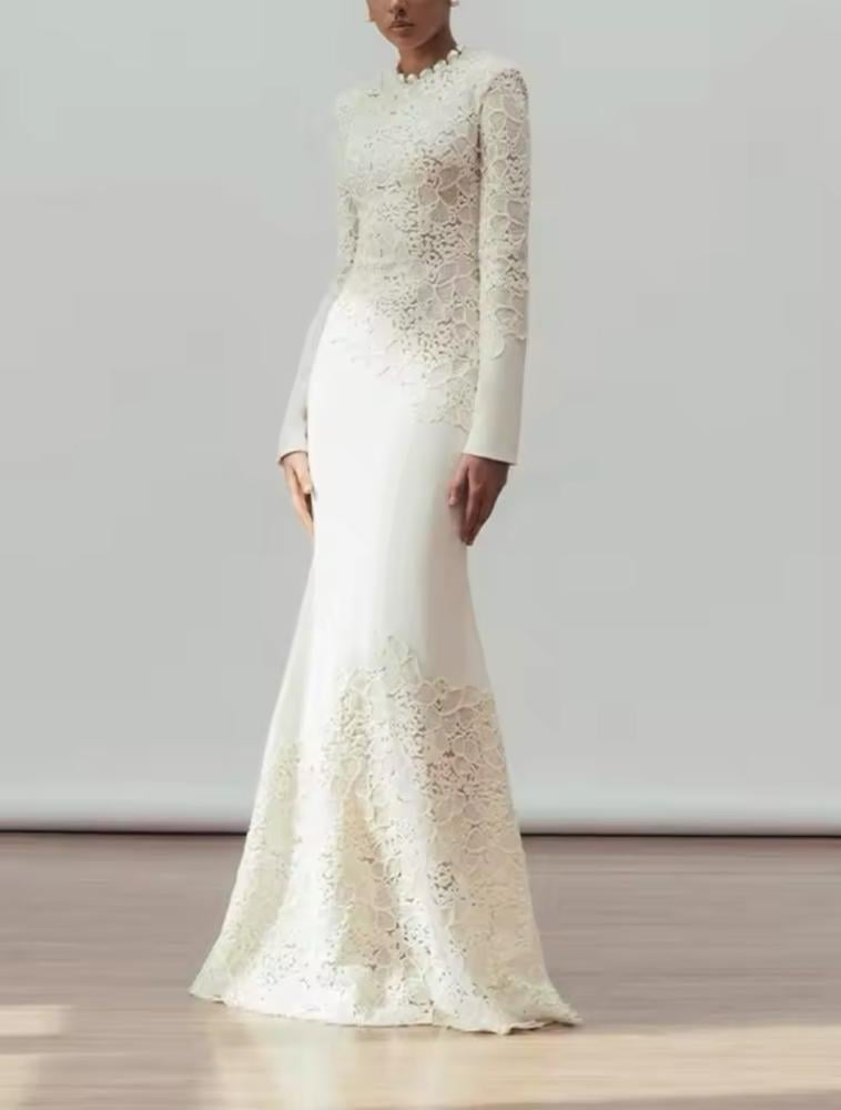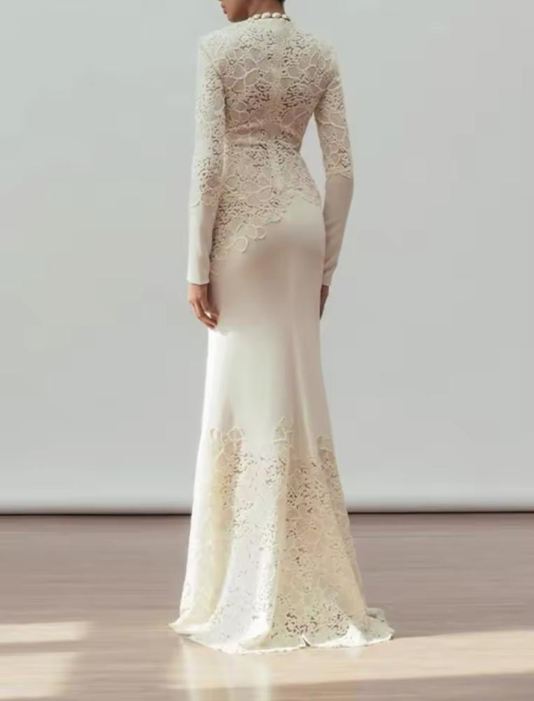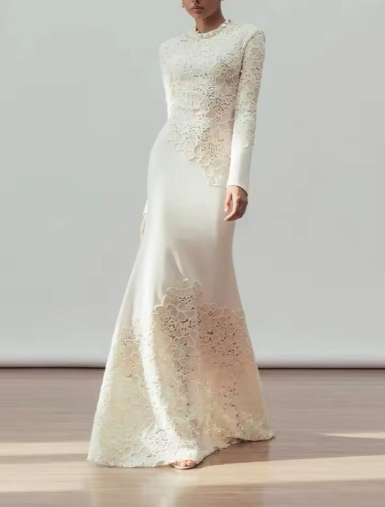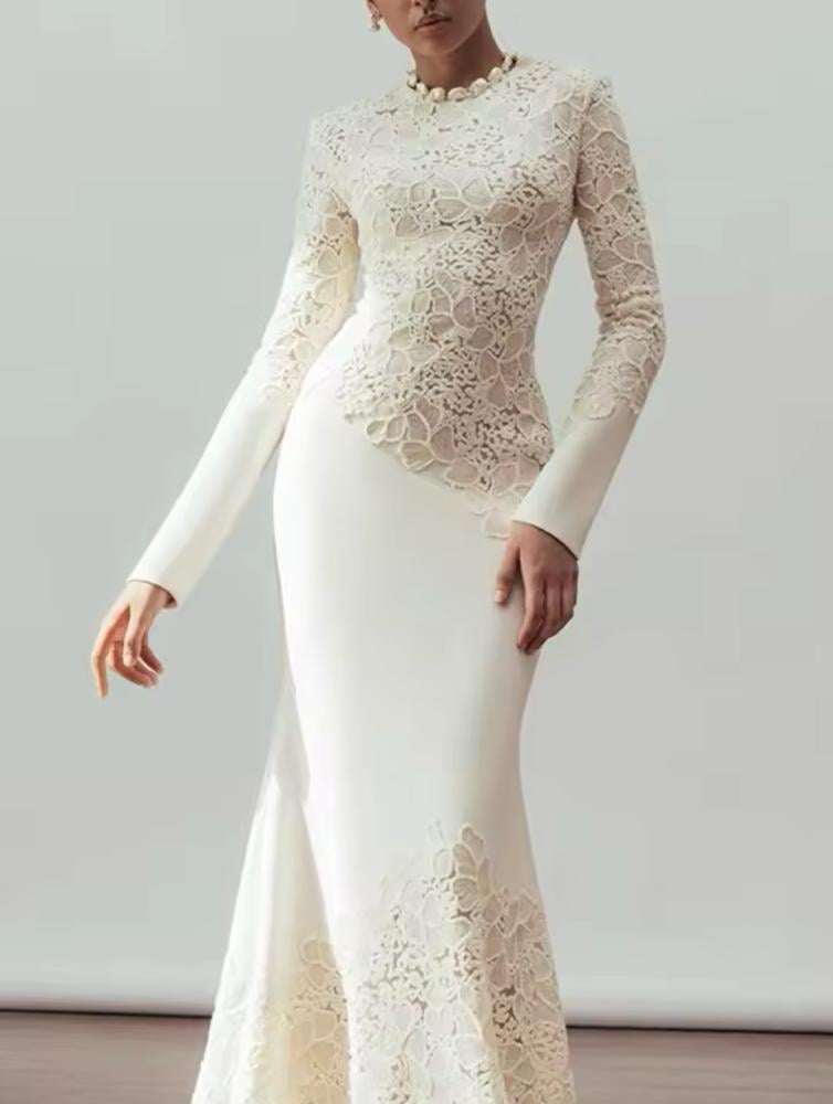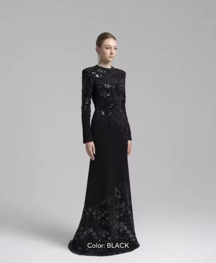 فساتين سهرة أنيق برقبة دائرية وأكمام طويلة