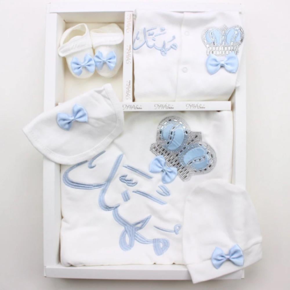 طقم مواليد تاج سماوي 5 قطع أنيق وجميل