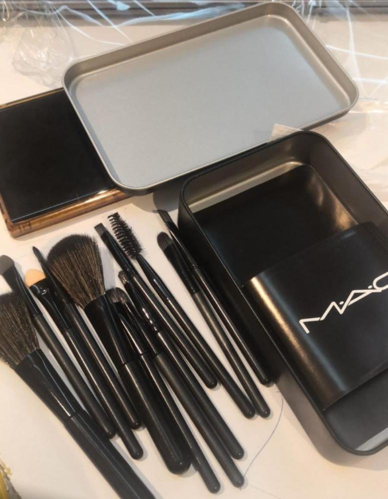 مجموعة فرش مكياج من ماك (MAC) تأتي في علبة معدنية أنيقة.