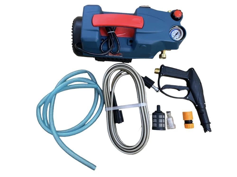 مضخة غسيل من شركة boss صيني بتقنية اللمانية بقوة 2200واط وقدرة 220بار يأتي مع المضخة لي بطول 7 متر ومفتاح للتحكم بقوة الظغط بالاضافة الى علبة صابون وتطويلة للمسدس للاماكن الضيقه بالامكان السحب من السطل او الصنبور مباشرة ضمان تشغيل