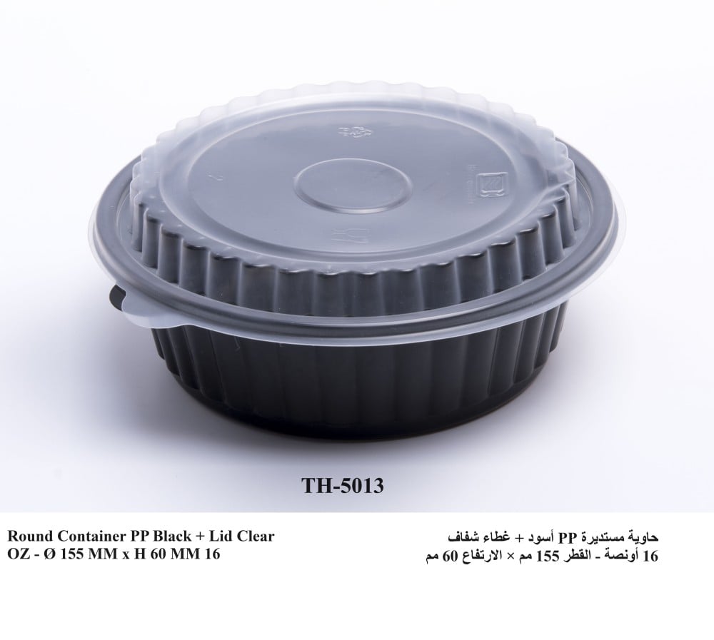 حاوية مستديرة PP أسود + غطاء شفاف TH-5013 (12196)