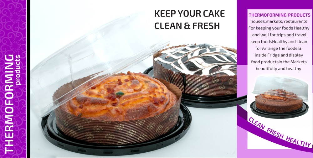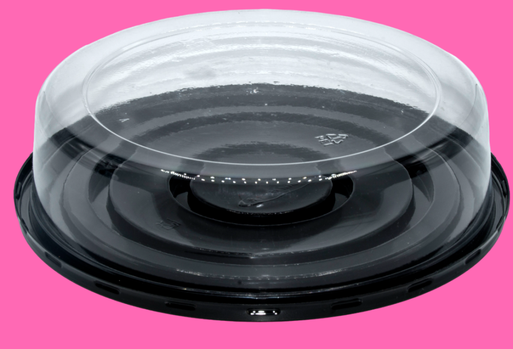 قواعد بلاستيكية مستديرة باللون الأسود مع غطاء شفاف - للكيك TH-5026(11418)