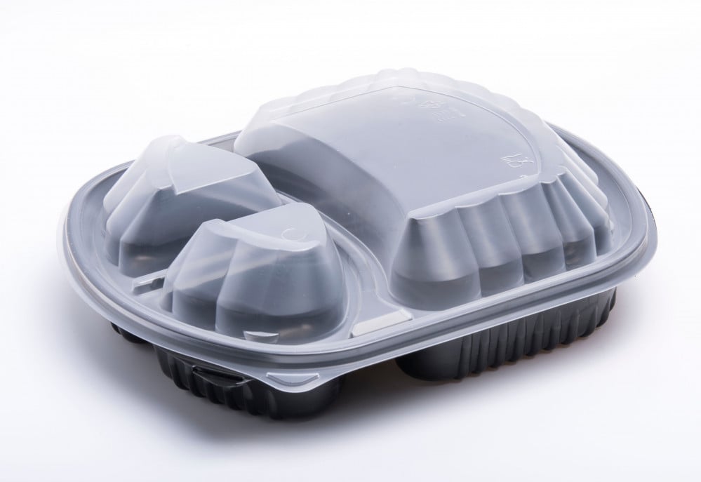 علب تسخين مايكرويف ذات قسمان و قاعدة سوداء و غطاء شفاف