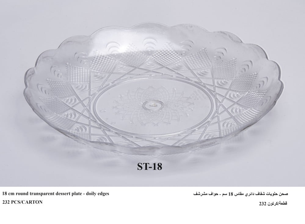 صحن حلويات شفاف دائري مقاس 18 سم - حواف مشرشف ST-18-CLEAR (14963)