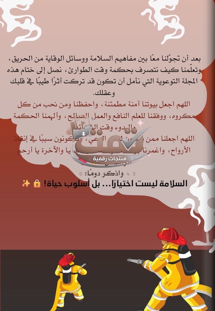مجلة توعوية تعليمية تفاعلية ومشوقة تهدف إلى تعزيز ثقافة الأمن والسلامة ومكافحة الحريق لدى الطلبة بأسلوب مبسّط وجذاب، يدمج بين المعرفة، التفاعل، والمواقف الواقعية، ويغرس الوعي الوقائي بطريقة قريبة للفهم ومناسبة للفئة العمرية.