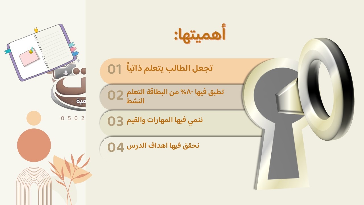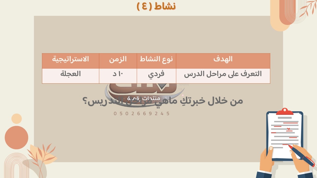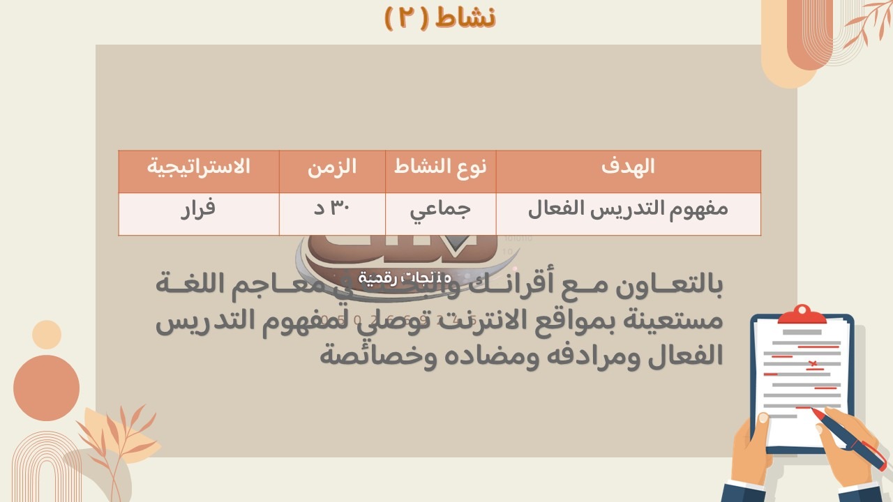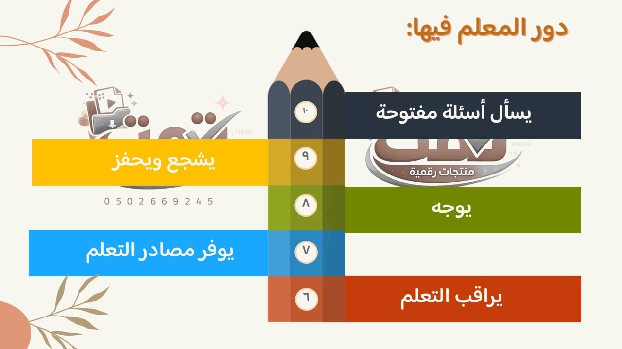كما يتضمن العرض استراتيجيات حديثة وأنشطة تفاعلية تعزز التفكير والمشاركة داخل الصف.