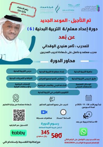 دورة إعداد معلم /ــة التربية البدنية ( 6 ) - ( عن بعد )