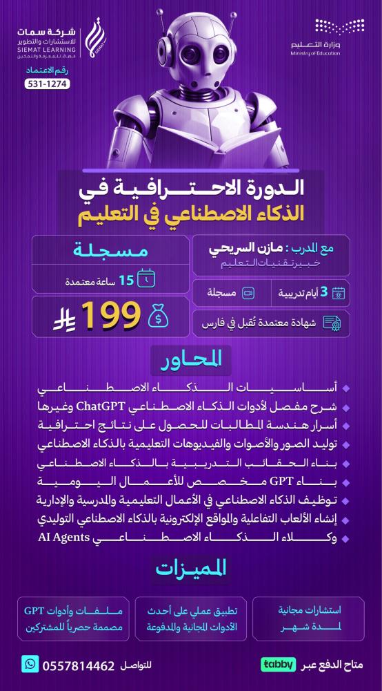 ✨الدورة الاحترافية في الذكاء الاصطناعي في التعليم
