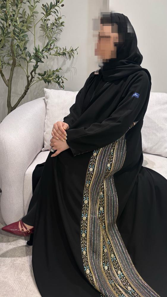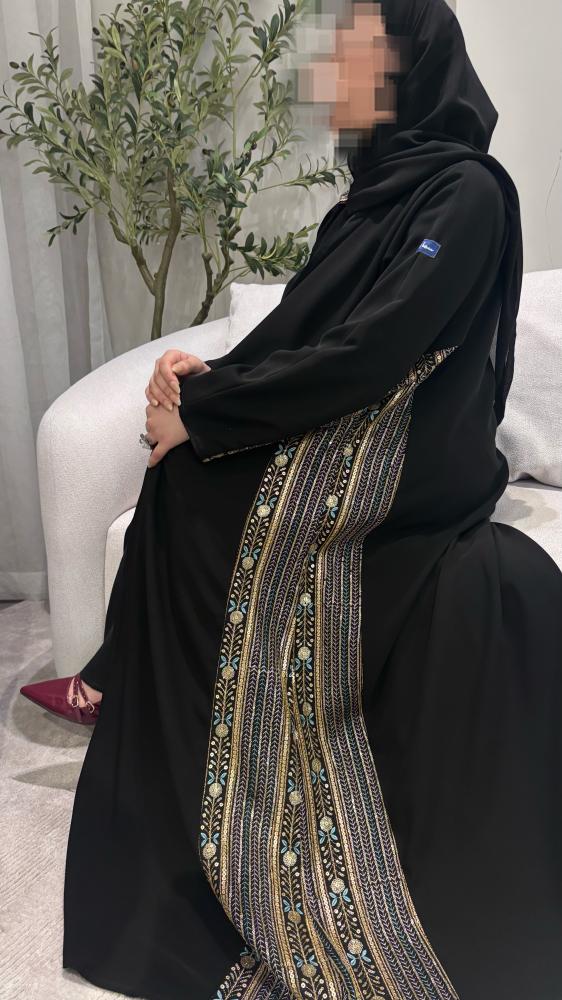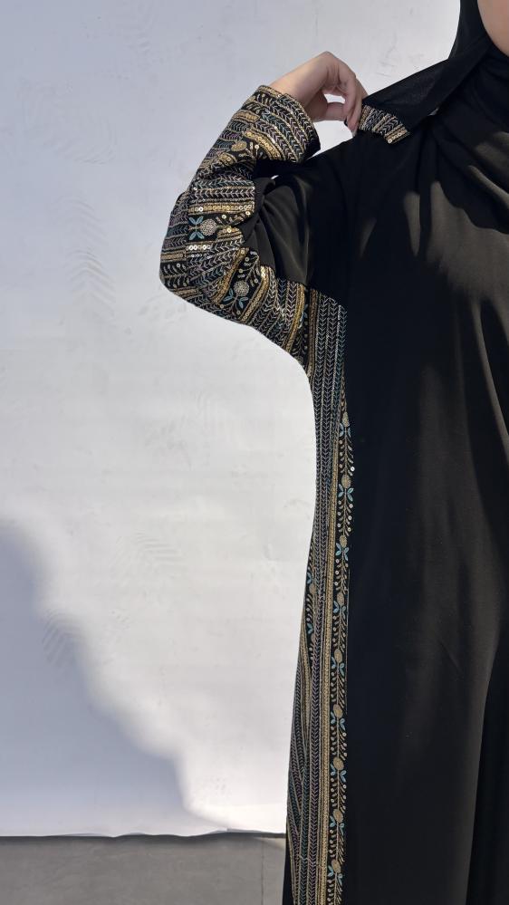 القماش لمياء اندنوسي اسود الجوانب قماش مطرز باللون الذهبي