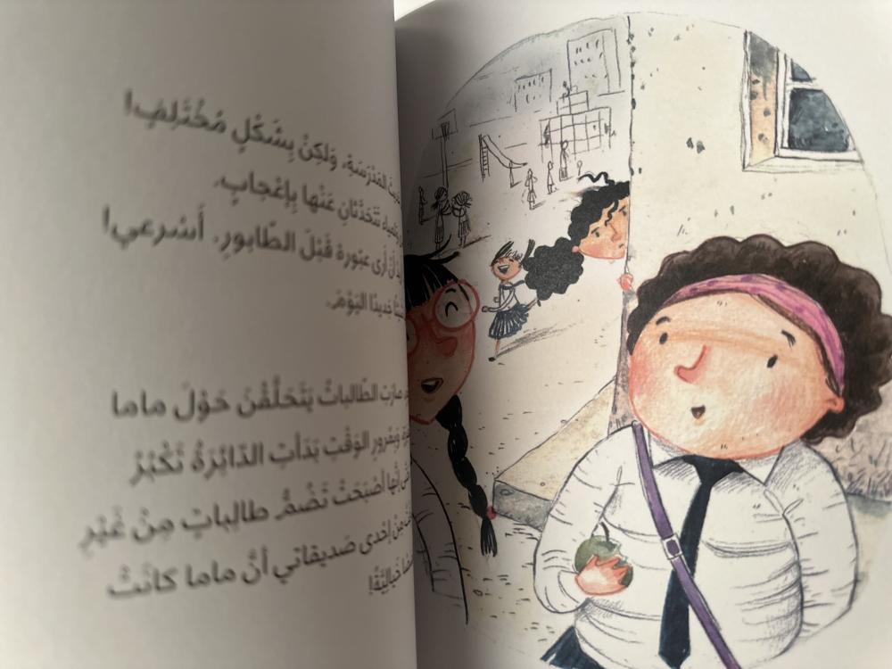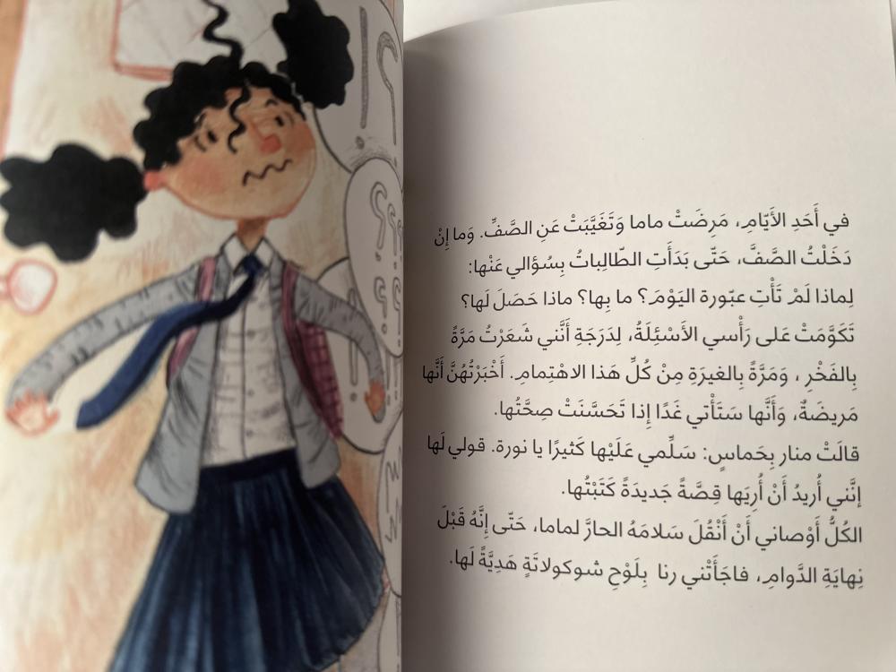 قصّة طريفة تبحث بأسلوب خفيف الظّل مشاعر نورة، عندما أصبحت أمّها عبير بين ليلة وضحاها بنت صفّها. فعندما تقرّر عبير، والدة نورة، الانضمام إلى صفّ ابنتها لتحسين لغتها الإنجليزيّة تصاب نورة بالهلع، فهي لا تريد أن تكون مع أمّها في نفس الصّف! تنشغل نورة بمراقبة تصرّفات أمّها في المدرسة وفي البيت عن بُعْد. فهل ستتمكّن نورة من التّعامل مع هذا الوضع الجديد الّذي وجدت نفسها فيه؟