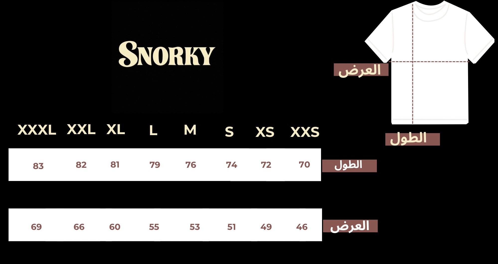 جدول المقاسات