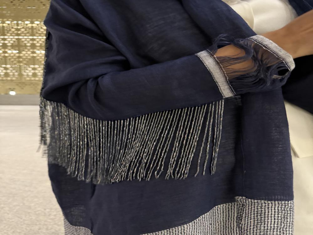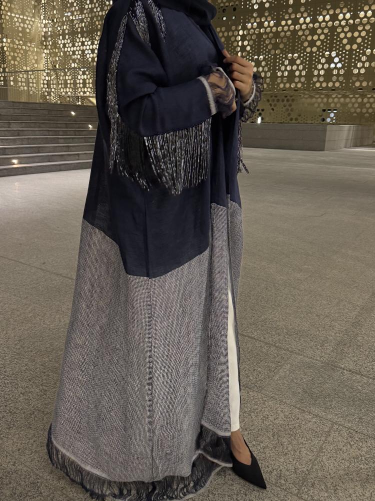 خامة العبايه لينن ناعم، مع تفاصيل شبك في النص السفلي انيقة و فخمة