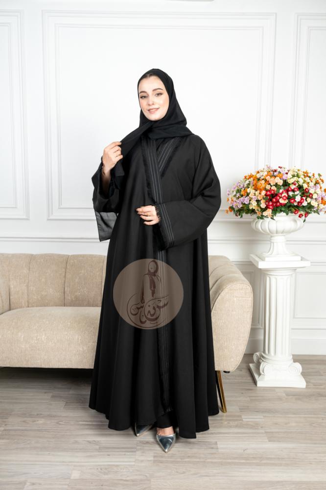 تألقي بعباية كلاسيكية وعملية صُممت لتناسب إطلالتك اليومية والزيارات العائلية. تتميز العباية بقصة كلوش التي تمنحها اتساعاً انسيابياً وحركة مريحة، وهي مصنوعة من قماش النمار المعروف بمتانته وملمسه الناعم ووقفته الجيدة.