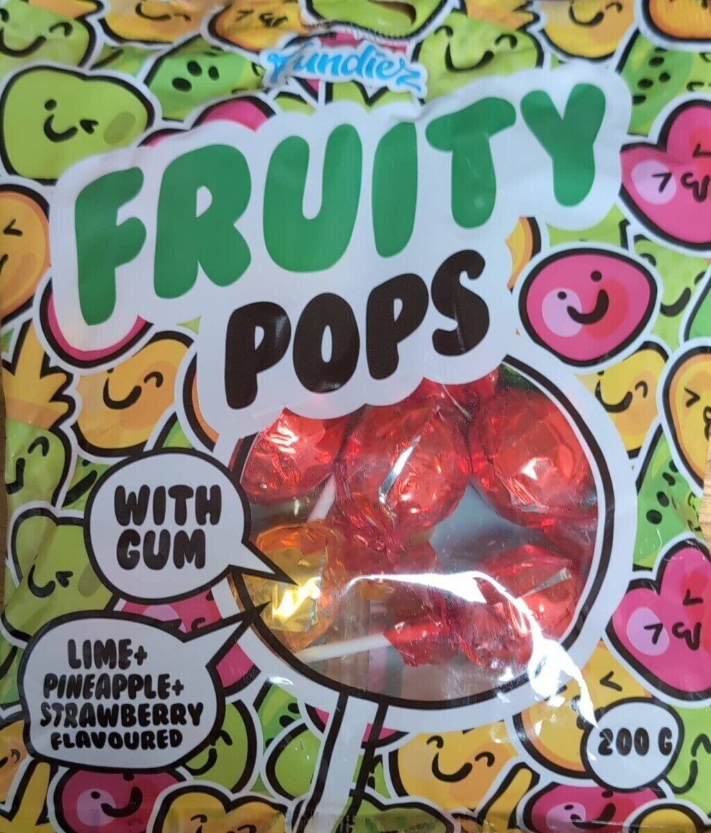 فندييز فروتي بوبس مع العلكة 200 جرام ± 10 قطع. لولي مع فاكهة الفاكهة (أردبي، ليمون، أناناس) مع كاووجوم.