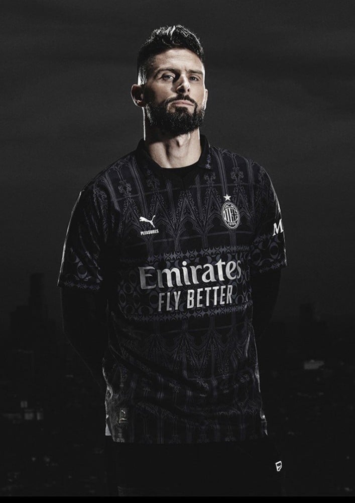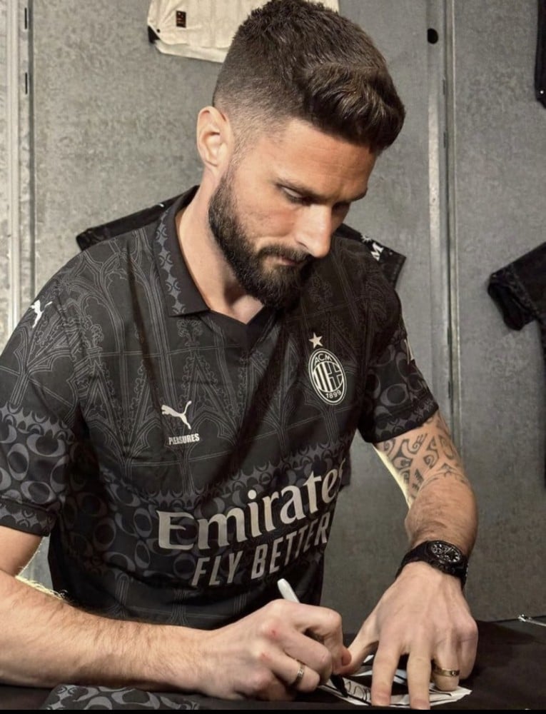 تيشرت ميلان اسود نسخة لاعبين مع شعار الابطال