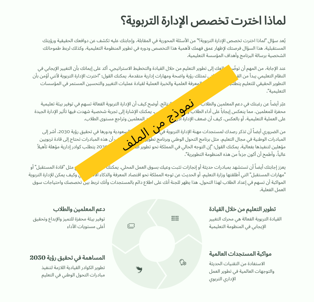 ملف الاستعداد لاجتياز مقابلة واختبار ماجستير الإدارة التربوية – دليلك للقبول بثقة!
