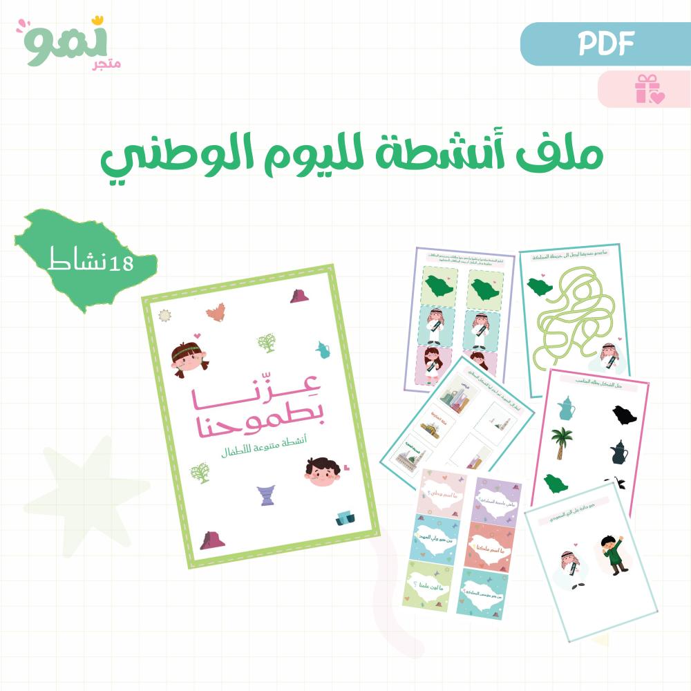 ملف رقمي مميز لليوم الوطني السعودي يحتوي على 18 نشاط متنوع يجمع بين التعليم والمرح، مصمم بطريقة تفاعلية ومبهجة تناسب الأطفال وتضفي أجواء من الفرح والانتماء.