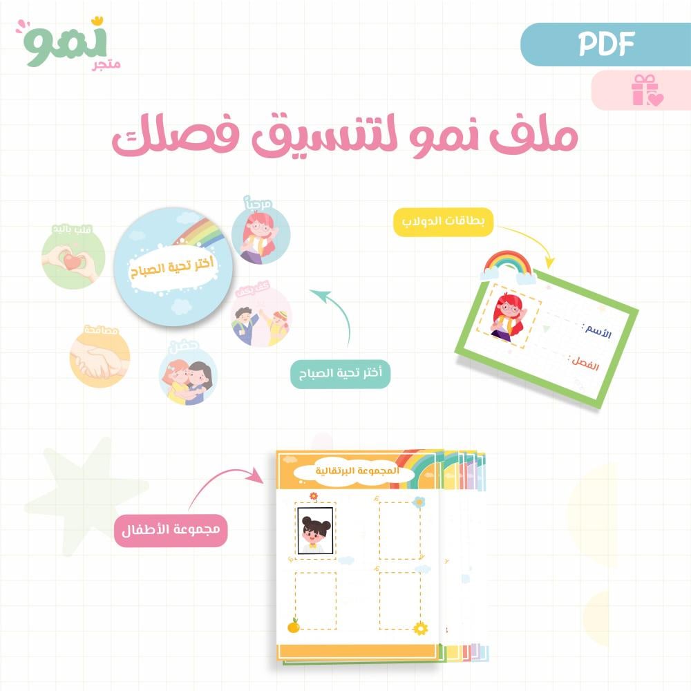 هديتنا لأطفالك عبارة عن تصميم إضافي حصري من إعداد المتجر، مليان ألوان ومرح، يضيف أجواء ممتعة داخل الصف، ويجعل التعلم أكثر حماسًا وفرحًا. متوفر حصريًا لعملاء “نمو"