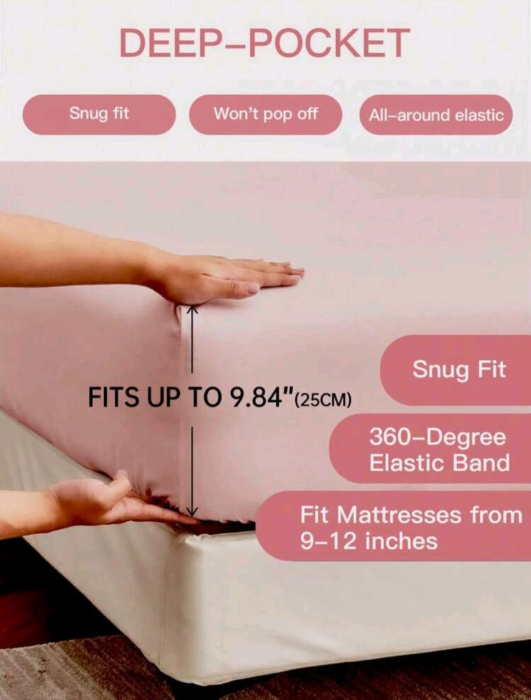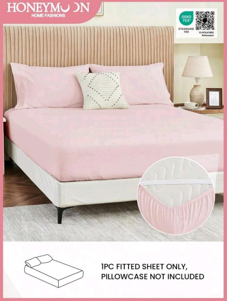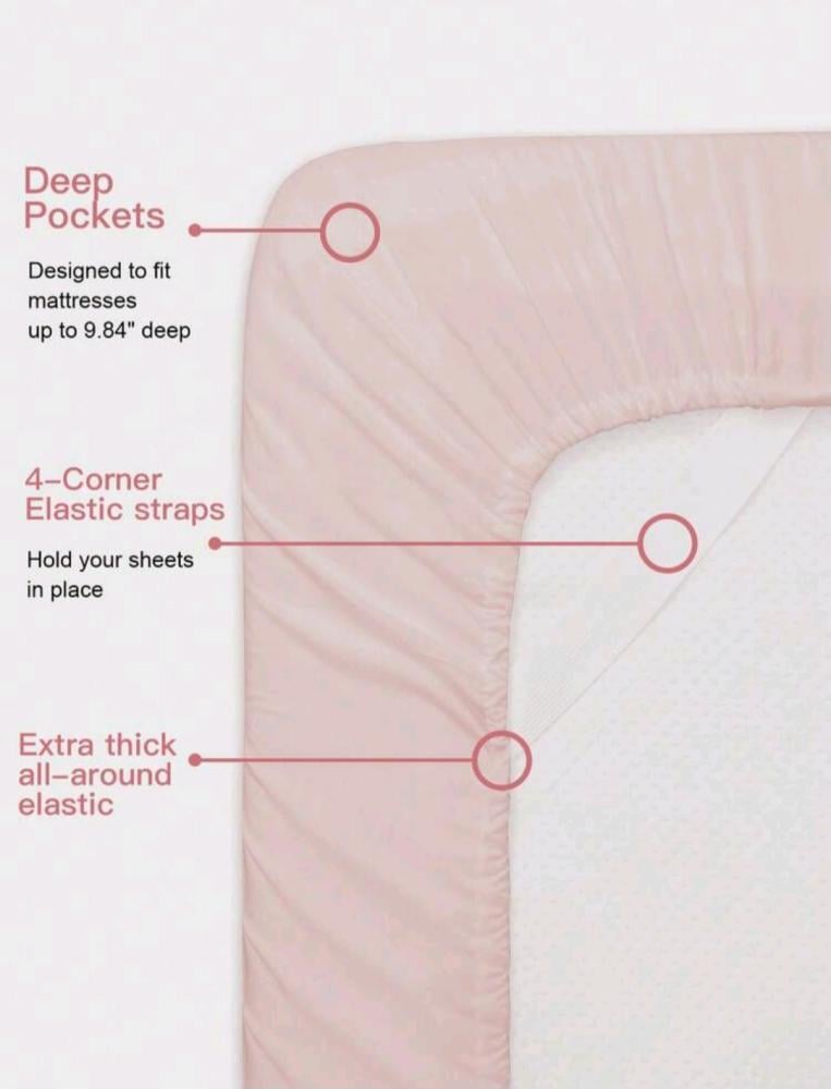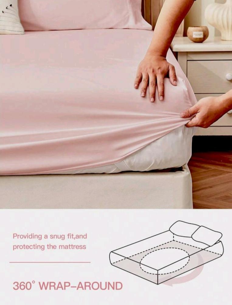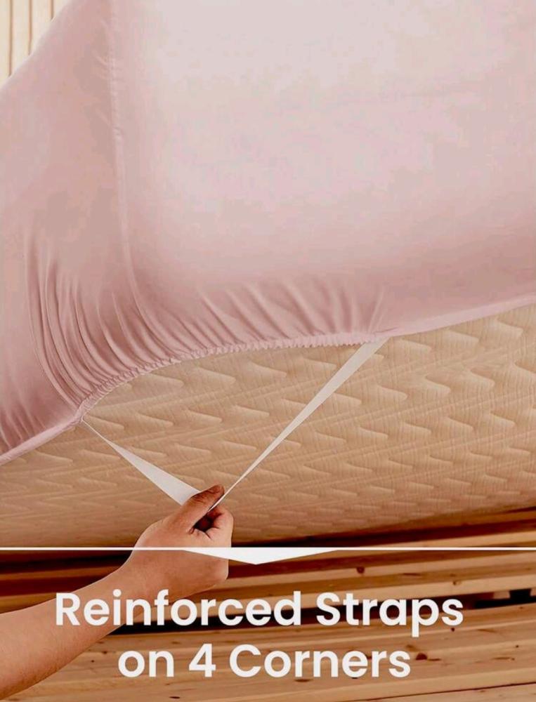 ملاءة سرير مزودة بأربعة أشرطة مطاطية من الأطراف - مقاس 200 ×140 سم - لون وردي فاتح