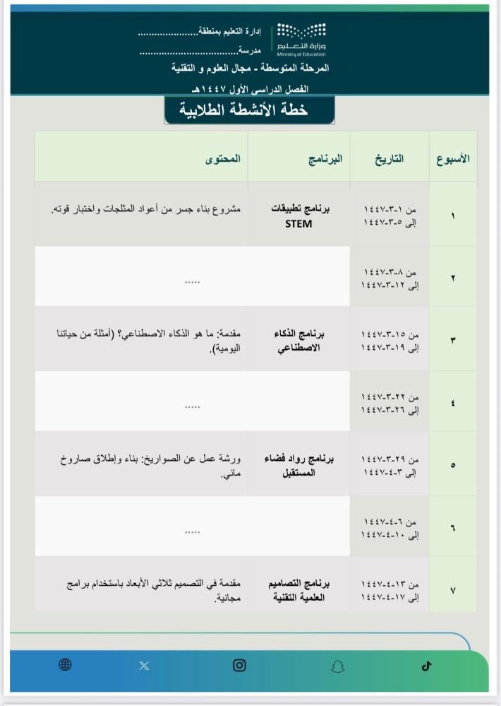 ملاحظة : ( اختيار الخطة حسب تقويم منطقتك )