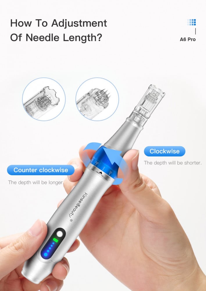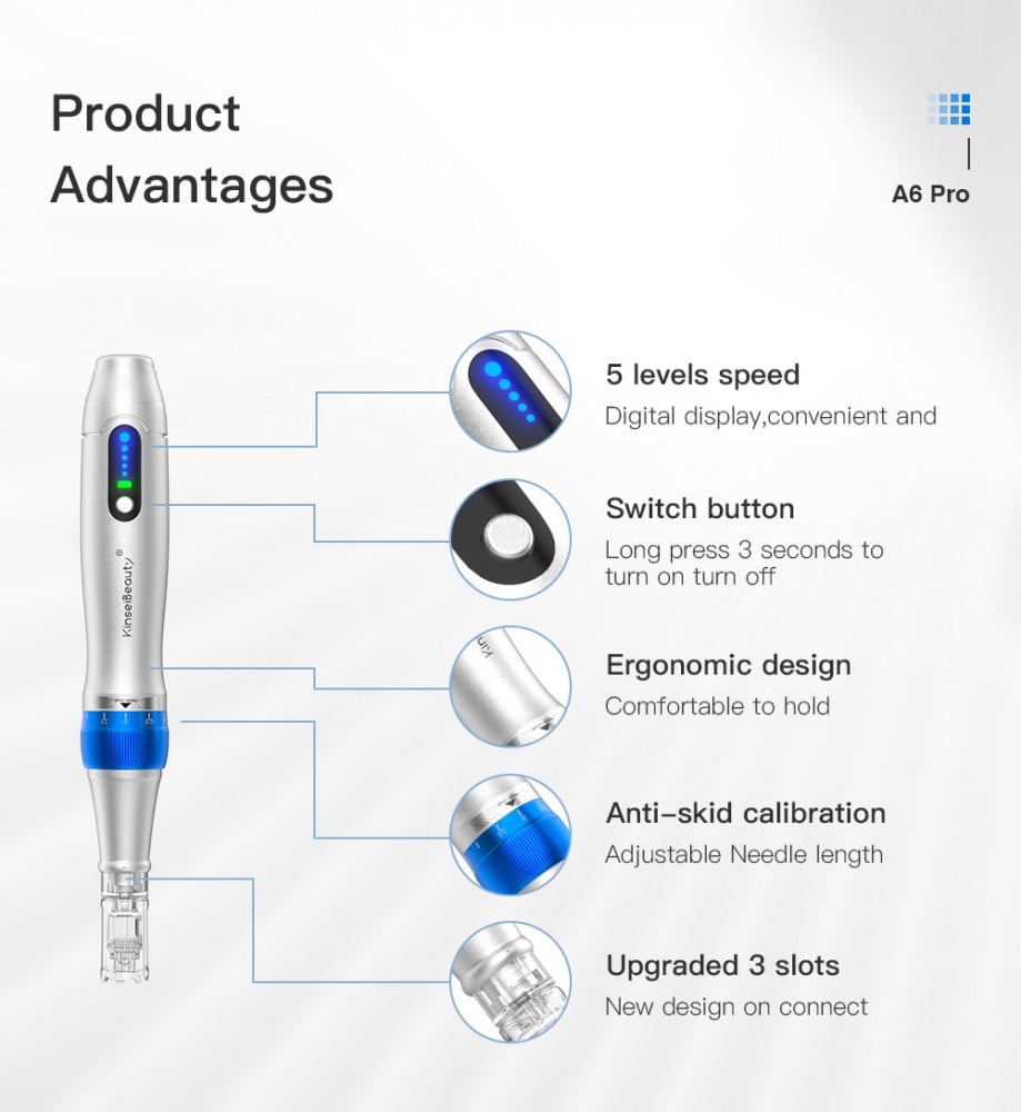 ديرما بن هو جهاز صغير يشبه القلم، يتكون من مجموعة من الإبر الدقيقة تعمل على خلق ثقوب صغيرة في الطبقة العليا من البشرة.